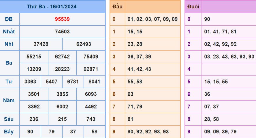 Chốt số XSMB 17/1/2024: