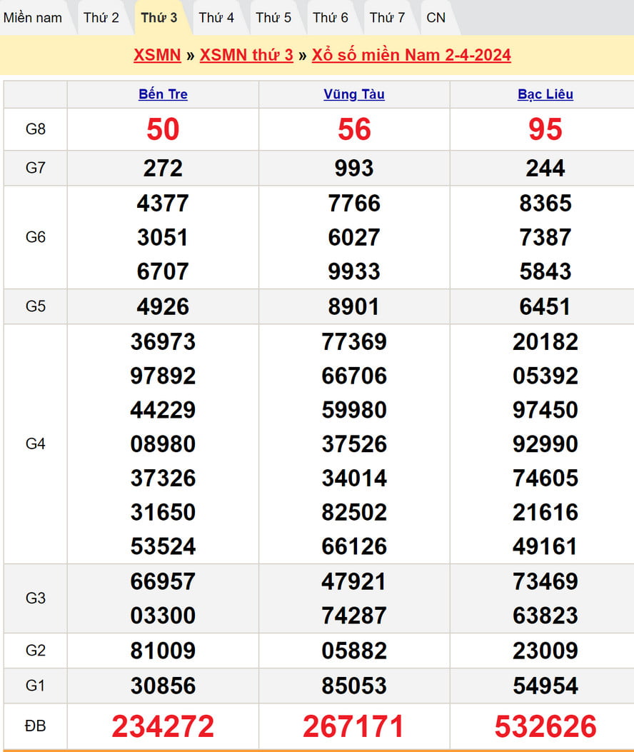 Soi cầu dự đoán XSMN hôm nay thứ ba ngày 9/4/2024 gồm 3 đài : Xổ Số Vũng Tàu, Xổ Số Bến Tre, Xổ Số Bạc Liêu. Các cầu lô Xổ Số MN hôm nay đều là các cầu lô ngắn ngày, với các cặp số được chọn đều có tần suất ra số đều hy vọng hôm nay sẽ rực rỡ.