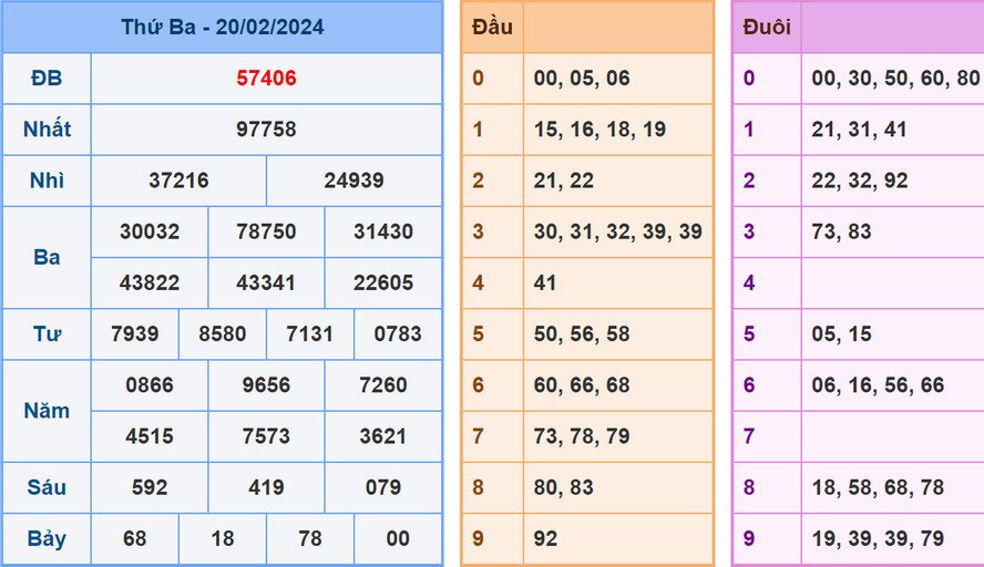 Chốt số XSMB 21/2/2024: