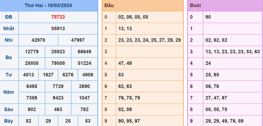| Ngày | Bạch Thủ Lô | Song Thủ Lô | Lô Xiên | Lô Rơi – Lô Lặp | Lô Đảo |