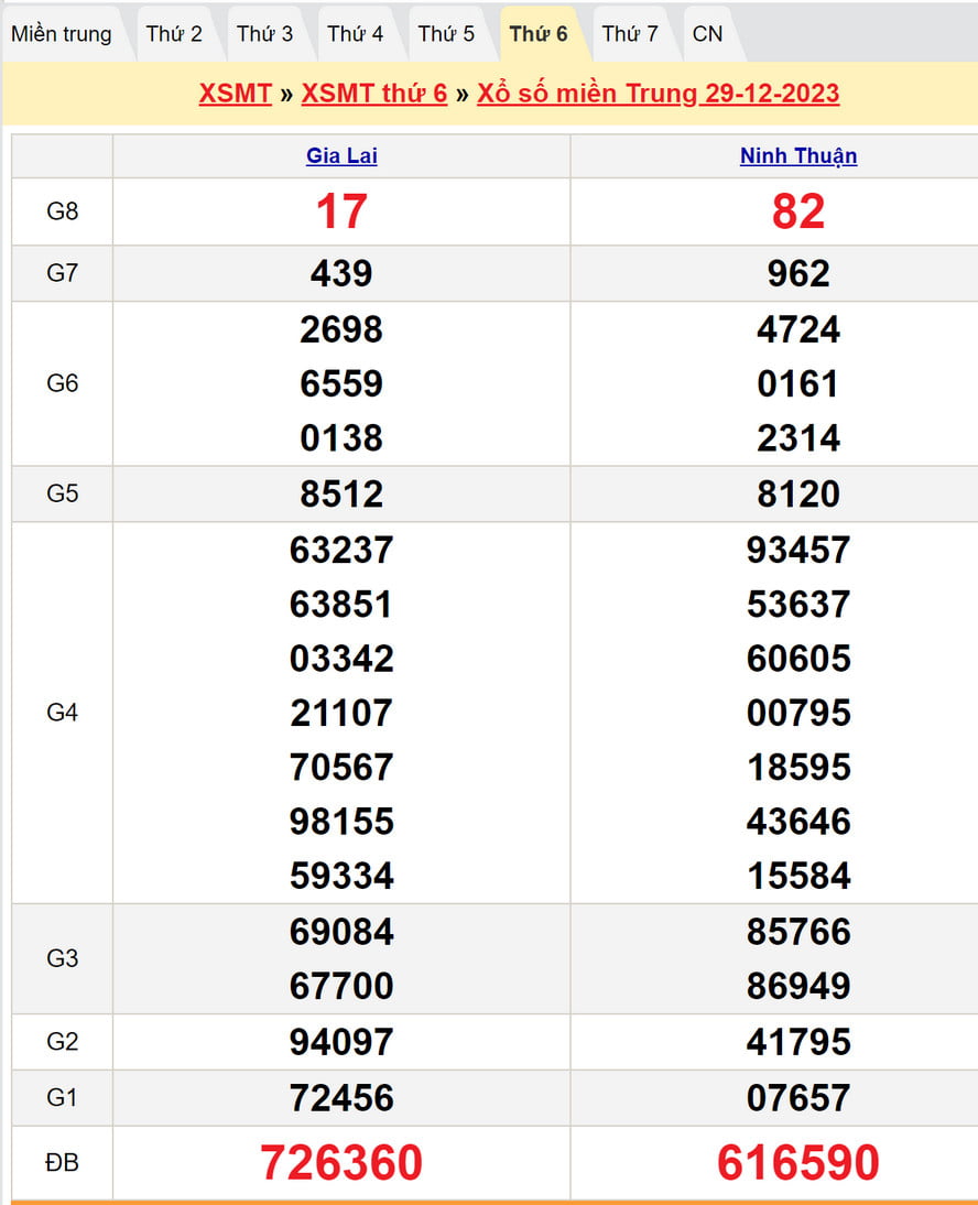 | Đài | Giải Đặc Biệt | Giải 8 | Bao lô |