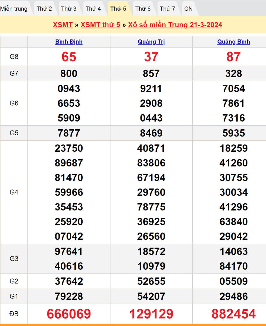 | Đài | Giải Đặc Biệt | Giải 8 | Bao lô |
