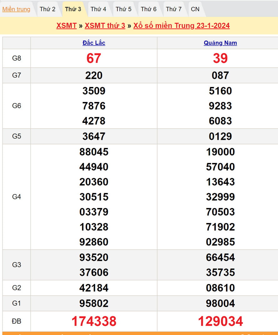 Soi cầu VIP dự đoán XSMT 23/1/2024 thứ Ba : Đắc Lắc – Quảng Nam