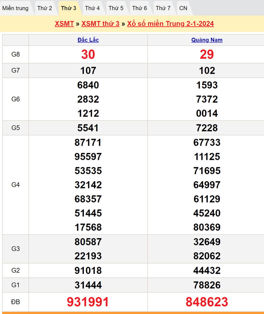 Soi cầu XSMT 2/1/2024, dự đoán XSMT thứ 3: Quảng Nam, Đăk Lắc